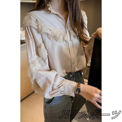 ブラウス レディース シャツブラウス 長袖 レース付き襟 レトロ バルーンスリーブ クラシック フランス風 レース付き 可愛い ぽわん袖 春 秋
