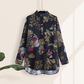 シャツ シャツブラウス ブラウス トップス 前開き レディース ロング丈 長袖 折り襟 花柄 柄 プリント 綿麻 通気性 大きいサイズ ゆったり 春 30代