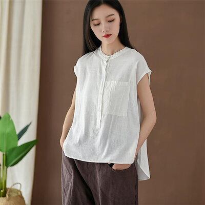 ブラウス シャツ 夏 半袖 レディース ガーゼ ブラウス レディース ホワイト コットン 綿 通気性 シンプル 折り襟 大きいサイズ ゆったり 無地 おしゃれ 可愛い