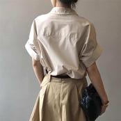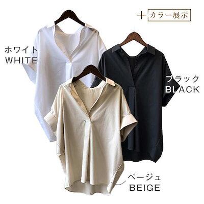 シャツ 半袖 レディース 夏 ブラウス フレンチスリーブ オフィス 白シャツ 黒シャツ 折り襟 薄手 vネック トップス プルオーバー 大人 ビジネス 通勤