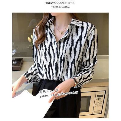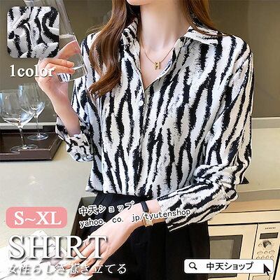 万能流行感 長袖シャツ レディース 春秋 シャツブラウス オシャレブラウス ゼブラ柄 プリントブラウス シャツ 折り襟 着痩せ トップス 韓国風 ゆったり お出かけ