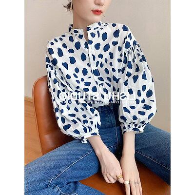 ブラウス シアーシャツ ブラウス 春レトロ イレギュラー 花柄立ち襟シャツ レディース ランタン袖 おしゃれ百掛け トップス 軽薄秋夏新作オフィスシフォンシャツレディース長袖ルーズ