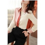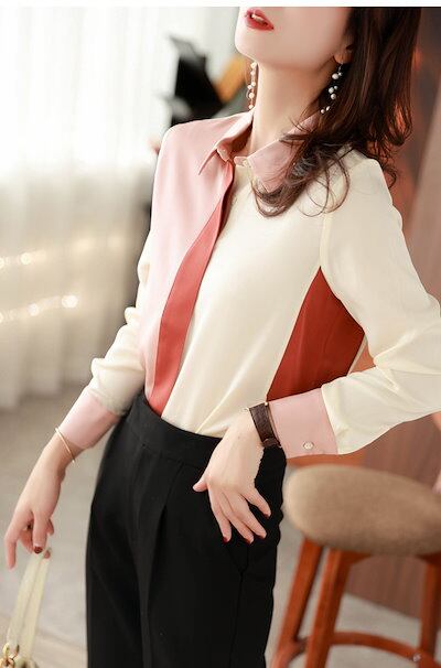 ブラウス レディース 春夏秋新作 オシャレブラウス レションシャツ 長袖トップス 配色 折り襟ブラウス 大人 上品 通勤40代ゆったり Tシャ