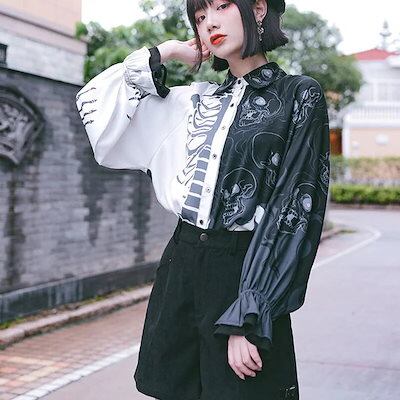 シャツ レディース 柄シャツ トップス ブラウス ランタンスリーブ オリジナル 個性的