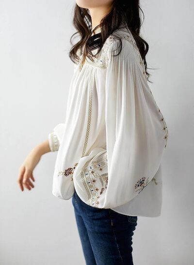 ボヘミア風 パフスリーブ 柄ブラウス 立襟 ック 通勤L ゆる 長袖 体型カバー チュニック シャツ レディース ブラウス