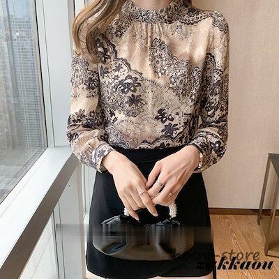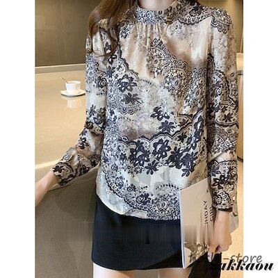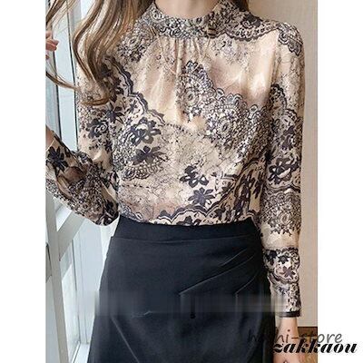ブラウス レディース トップス レース 柄 スタンドカラー モックネック ハイネック シフォン おしゃれ エレガント ゴージャス 春 秋 韓国