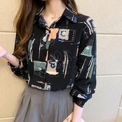 ブラウス 長袖 韓国風 柄シャツ レディースファッション