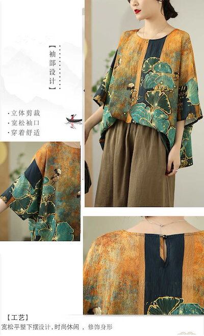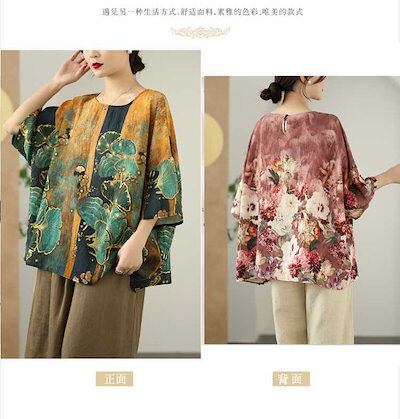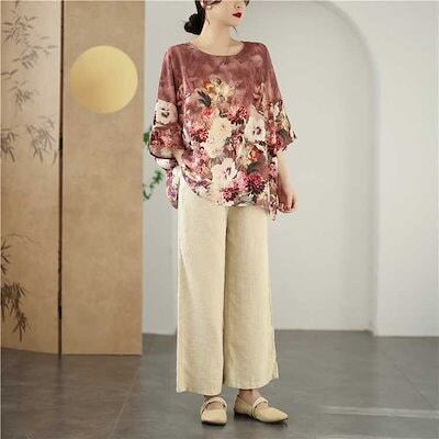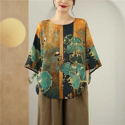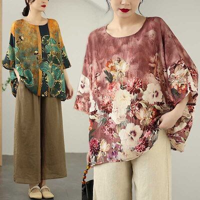「ファットガール」 2025春新品 柄Tシャツ 大きいサイズ 体型カバー レディース ブラウス 七分袖 チュニック メガ割