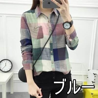 トップス シャツ レディース ブラウス 個性的 長袖 襟付き 前開き チェック 柄 赤 青 S M L XL 2XL 春 夏 秋 上品 きれいめ おしゃれ シンプル カジュアル ナチュラル クール