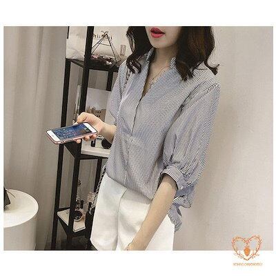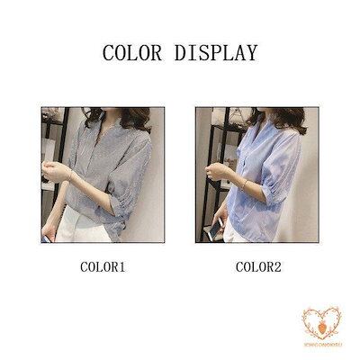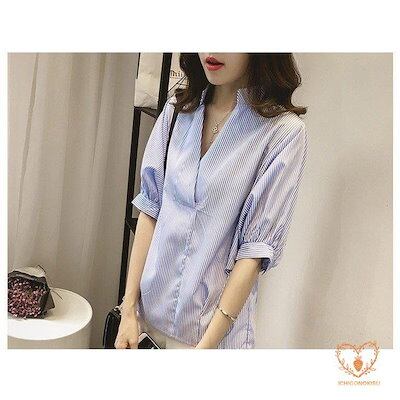 シャツ トップス ブラウス シャツブラウス レディース 5分丈袖 オフィス ストライプ柄 柄 ドッキ