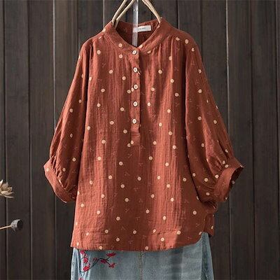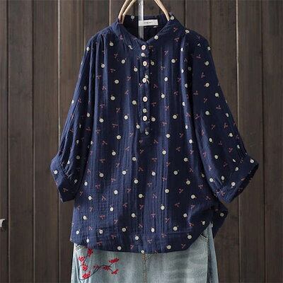 シャツ ブラウス 五分袖 レディース 柄 総柄 2重ガーゼ ダブルガーゼ ガーゼシャツ 春 夏 ぽわん袖 カワイイ トップス プルオーバー カジュアル ヘンリーネック ドルマンスリーブ コットン 可愛