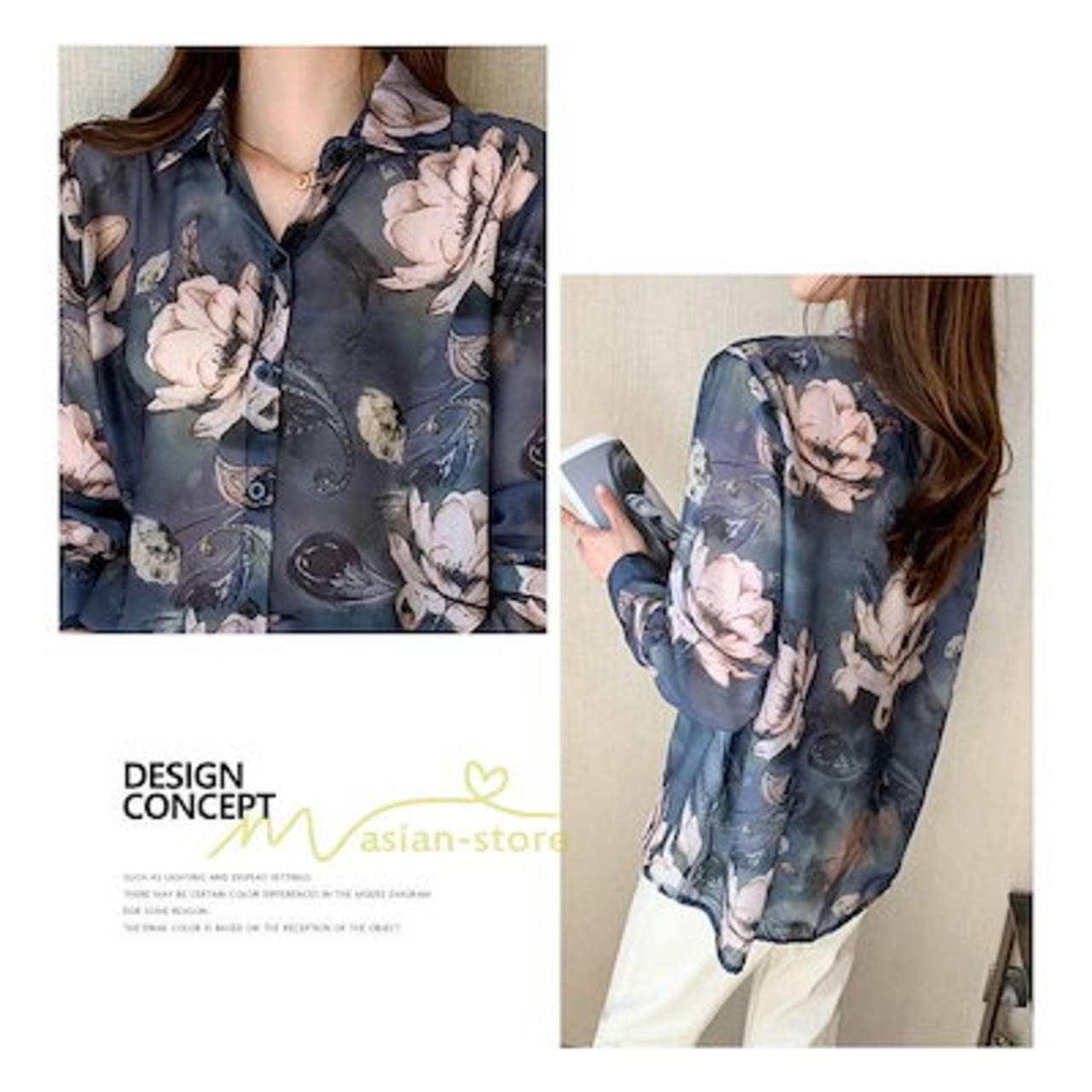 ブラウス レディース 柄 シャツ 長袖 ブラウスシャツ シフォン フラワー チュニック 大人 トップ
