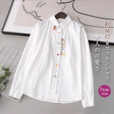 シャツ レディース 長袖 トップス 春秋 春 秋 レディースシャツ レディーストップス コットンシャツ 長袖シャツ 長袖トップス シャツブラウス 柄シャツ 刺繍シャツ ししゅう コットン 綿 はおり