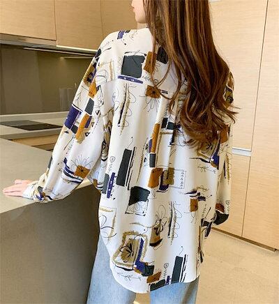 ブラウス レディース 長袖 韓国風 柄シャツ 長袖 オフィス フォーマル カジュアル とろみシャツ 服 花柄ブラウス 女性 トップス 大人 ゆるシャツ OLフェミニン きれいめ キュート きれいめ 通