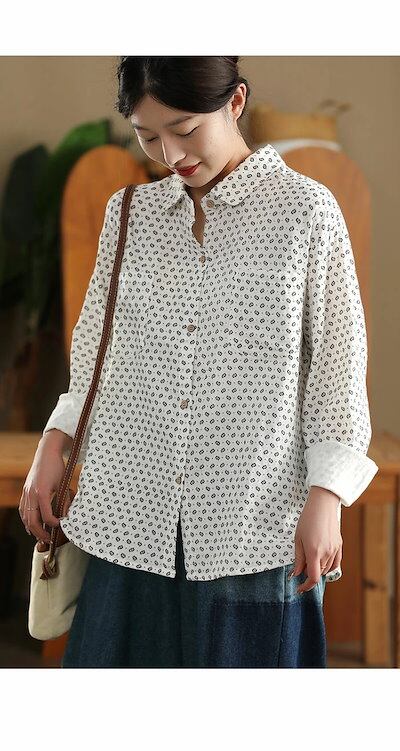 シャツ ブラウス レディース コットンシャツ 柄 スタンダードカラー 長袖 春 夏 秋 トップス スーツインナー カジュアル ナチュラル 柔らかい 通勤 OL オフィス フォーマル 入学式 卒業式 マ