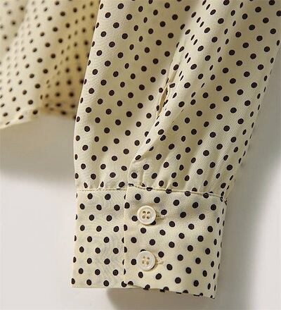ブラウス レディース 長袖 トップス 夏 レディースブラウス 柄トップス 柄シャツ 春 春夏 長袖ブラウス シャツブラウス スカーフカラー ボウタイ ドット 着回し 柄 がら 知的 着痩せ 華奢見え