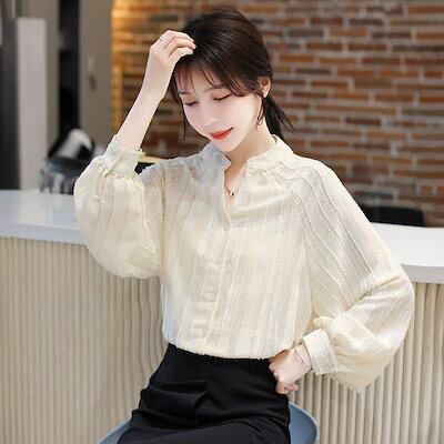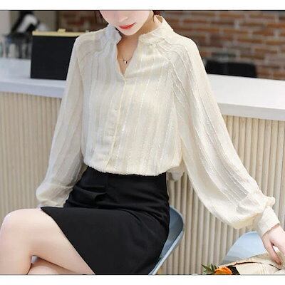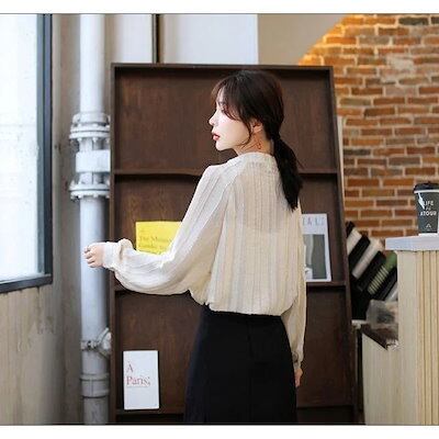 今っぽシアーシャツ 春夏洋風シフォンパフスリーブブラウス女性ゆったり日焼け止めエアコントップス女性Vネック長袖シャツ