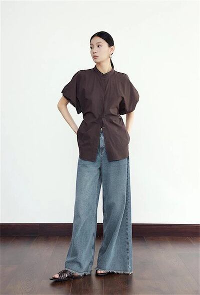 早い者勝ち パフスリーブ 怠惰な風 カジュアル 半袖シャツ 夏 デザインセンス 快適である 受け取って腰 気質