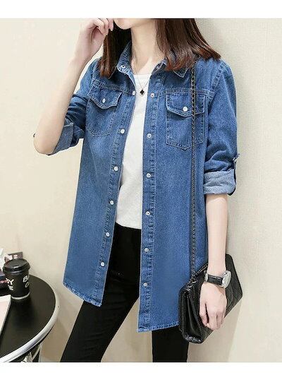 デニムシャツ シャツ デニム 秋 冬 シャツ レディース 大人 可愛い 長袖 トップス カジュアル デニム 大人 シンプル 無地 ブルーとろみ レディース シャツ 着痩せ おしゃれ 通勤 OL