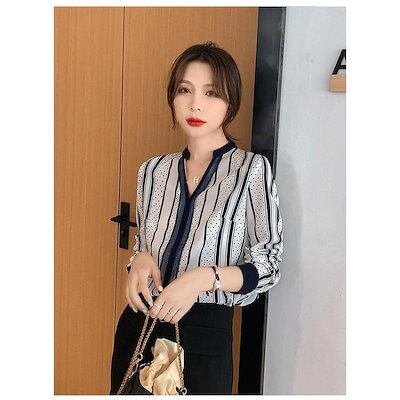 レディース ブラウス 春コーデ 長袖 新作 ゆったり オフィス きれいめ 春 トップス ストライプ カジュアル 大人 可愛い おしゃれ 50代 40代 30代 ミセス