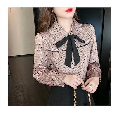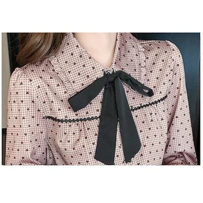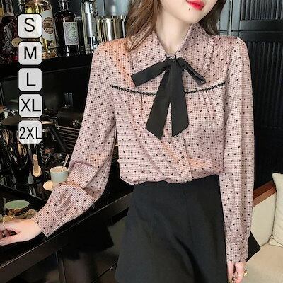 ブラウス レディース ビッグリボン 長袖 綿混 シフォン 春 レディース ボウタイ 大人 可愛い おしゃれ 花柄 きれいめ ゆったり