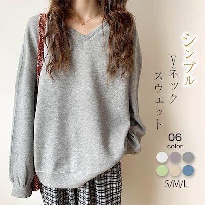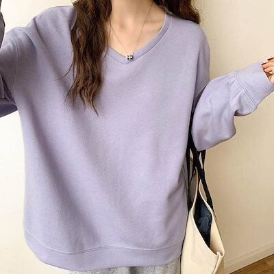 スウェット Tシャツ レディース カットソー トップス 無地 長袖 Vネック レイヤード 重ね着 大きいサイズ ゆったり 通学 通勤 カジュアル 春 秋 シンプル
