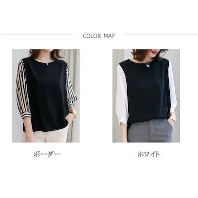ブラウス レディース 長袖 40代 春秋 vネック シャツ ブラウス ストライプ柄 おしゃれ トップス 韓国風 大人 通勤 オフィス OL ゆったり 30代 50代