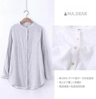 シャツブラウス レディース バンドカラー シャツ ブラウス 長袖 トップス 羽織り 袖 ロールアップ カジュアル 無地 チェック 大きいサイズ ゆったり 通勤 秋 シンプル 着回し 柔らかい