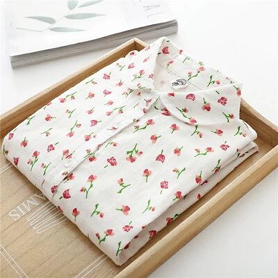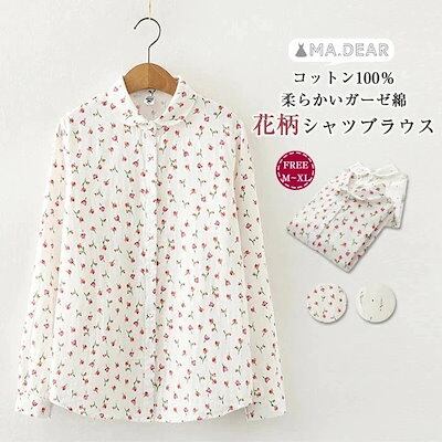 2重ガーゼ シャツブラウス レディース 丸襟 花柄 シャツ ブラウス 長袖 トップス ガーゼ カジュアル 羽織り ダブルガーゼ 柔軟 通勤 シンプル 着回し ガーゼコットン 柔らかい 可愛い