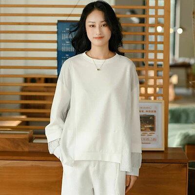 スウェット レディース トレーナー 春 秋 おしゃれ 異素材 ゆったり プルオーバー カットソー ドッキング 無地 トップス パーカー 長袖 リラックス アシンメトリー シンプル 切り替え ゆったり