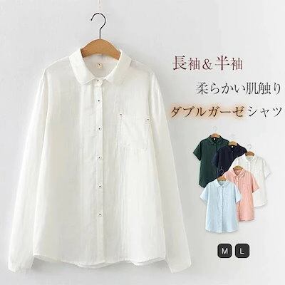 ガーゼ シャツ 半袖 長袖 2重ガーゼ シャツブラウス レディース トップス カジュアル ナチュラル ダブルガーゼ 柔軟 通勤 シンプル 柔らかい 着回し ガーゼコットン 可愛い