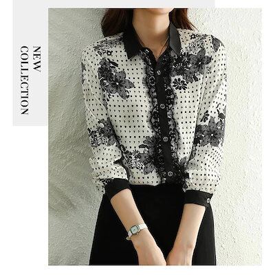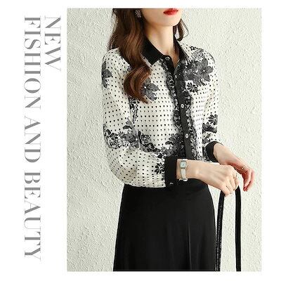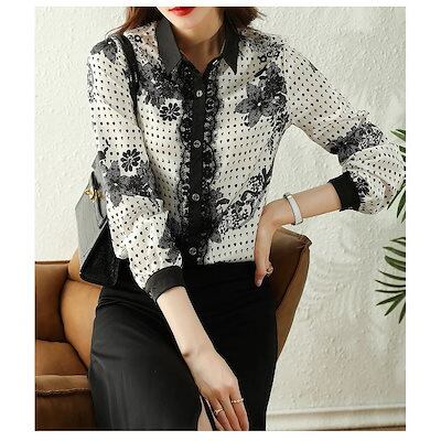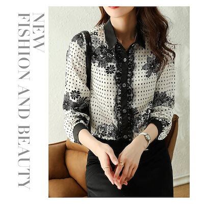 ブラウス レディース 春秋 長袖 綿混 花柄 シフォン レディース 刺繍 大人 可愛い おしゃれ きれいめ ゆったり