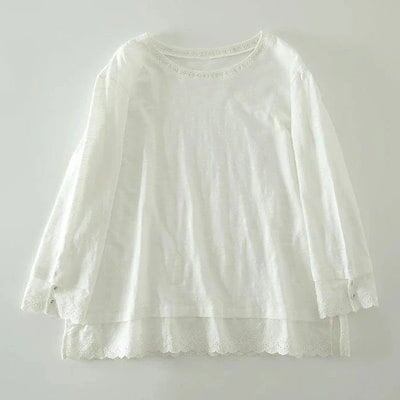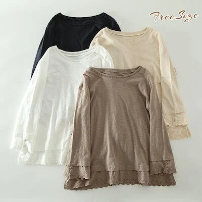 トップス ブラウス インナー ブラウス カットソー クルーネック レース付き 春コーデ 綿 Tシャツ 長袖 インナー トップス シンプル 無地 おしゃれ 着まわし 着回し 柔らかい 重ね着 レイヤード