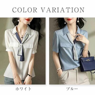 ブラウス シャツ レディース ブラウスシャツ Vネック 白シャツ トップス ホワイト 半袖 着痩せ とろみ素材 とろみ ゆったり シフォン フェミニン キレイめ オフィス カジュアル 大人 おしゃれ