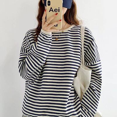 ブラウス パーカー トップス レディース 秋 長袖 カットソー チュニック ボーダー プルオーバー アウター ゆったり クルーネック 大人可愛い 体型カバー デート 通学 通勤 オフィス カジュアル