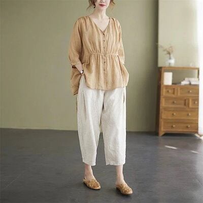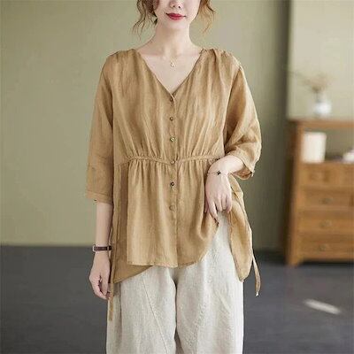 シャツ ブラウス 40代 レディース 秋 新作 長袖 Vネック 通勤 韓国風 無地 着痩せ 綿 フェイクレイヤード きれいめ 50代 30代 オシャレ ゆったり