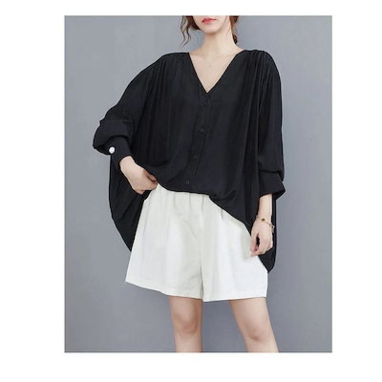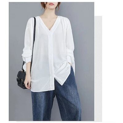 シャツ ブラウス 40代 レディース 秋 新作 長袖 Vネック 通勤 韓国風 トップス 着痩せ 綿 大きいサイズ きれいめ 白 50代 30代 オシャレ 大人 ゆったり OL