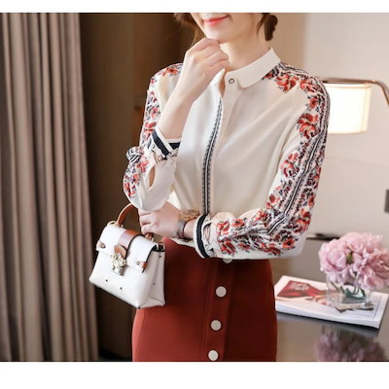 ブラウス レディース 春秋 長袖 綿混 エスニック シフォン レディース オリエンタル 大人 可愛い おしゃれ きれいめ ゆったり