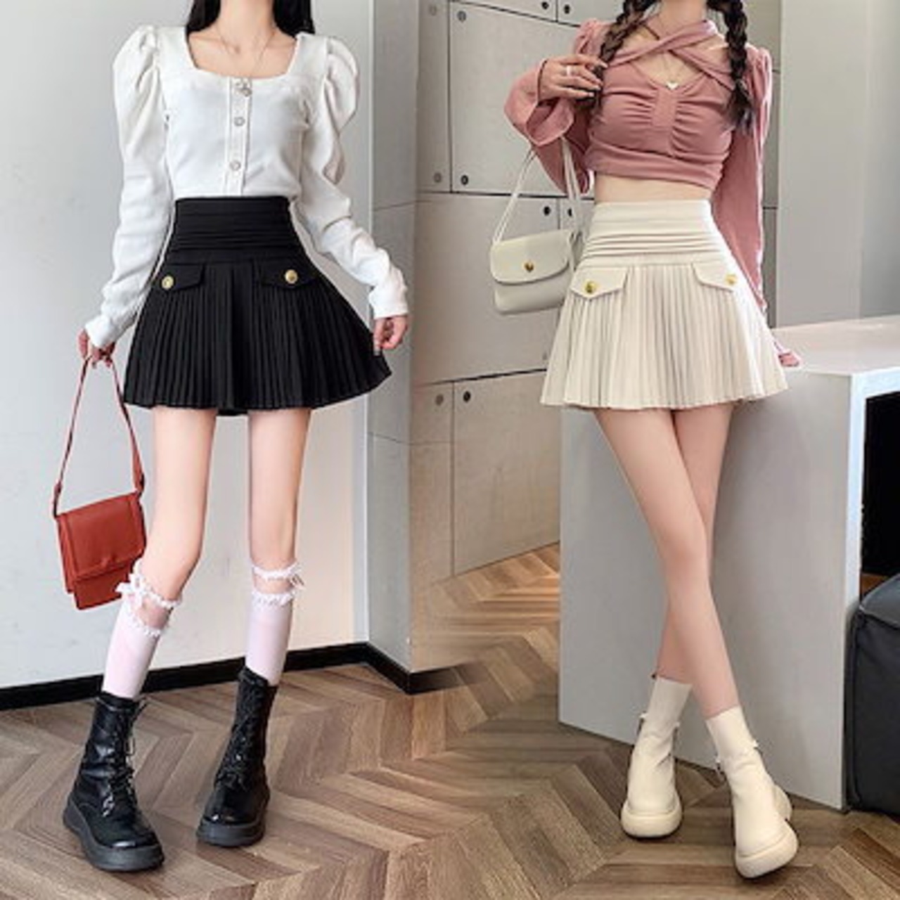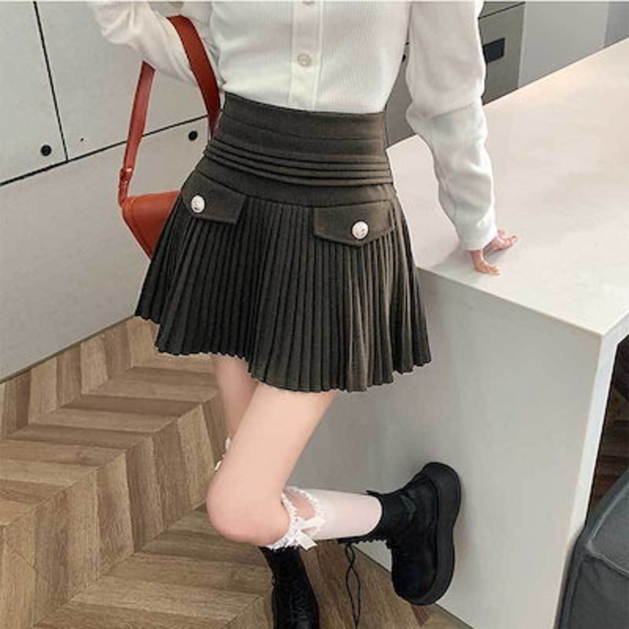 脚魅せミニスカート ショートスカート 2025新作ツイードプリーツスカートハイウエスト細身ガスバストルスカートワードスカート 韓国ファッション