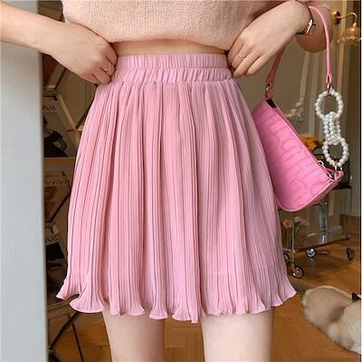 脚魅せミニスカート ショートスカート 2025夏のハイウエストシフォンスカート韓国版弾性ウエスト薄いふわふわプリーツピュアカラープリーツスカート 韓国ファッション