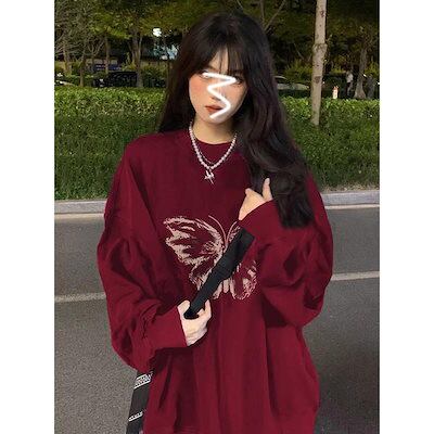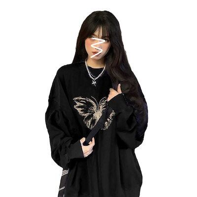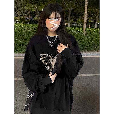ゆったりスウェット パーカー Tシャツ 秋の女性のための甘くてクールな黒いアメリカのスウェットシャツ雨の怠zyなスタイルレトロハイエンドセンスフライドベルベットラウンドネックジャケット