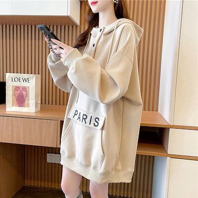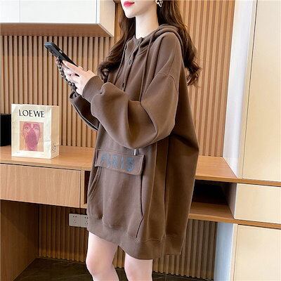 パーカー ゆったりスウェット 2025新作 シンプル 可愛い 運動 百掛け スウエットトップス アウター ロング着痩せ 大きめサイズ 長袖 韓国ファッション