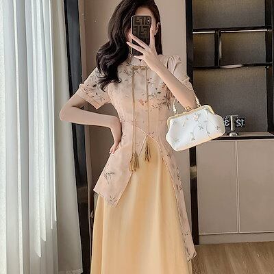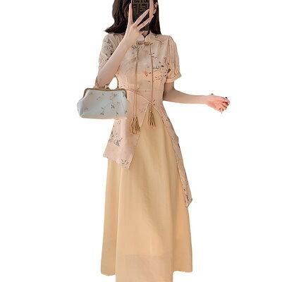 パーティードレス ドレス ワンピース 改良チャイナドレス 韓国ファッション 2024年夏のシックでエレガントな新しいプリントドレスのレトロなチャイナドレス修正版