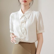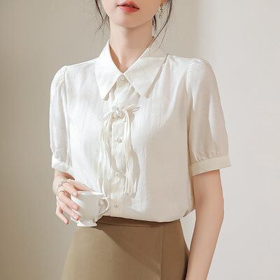 今っぽシアーシャツ 夏先取りブラウス シャツ シックなファッション レディース 半袖 夏 新作 韓国製 ボタン ホワイト ブラウス トップス 韓国ファッション