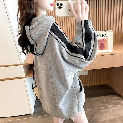 パーカー ゆったりスウェット スウェット 韓国ファッション トレンドはビッグロゴ 秋冬 長袖スウェット レディース 薄いゆったり 百掛け トップス ゆったり