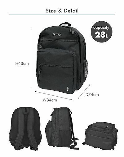 イーストボーイスクールリュック レディース 28L 高校生 中学生 女子 通学リュック かわいい おしゃれ 黒 大容量 A4 PC収納