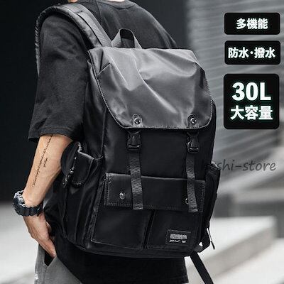 リュックサック メンズ ストリート 大容量 防水 撥水 おしゃれ リュック バックパック ノート PC 通勤 通学 出張 旅行 登山 防災 バイク 収納 ブラック