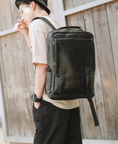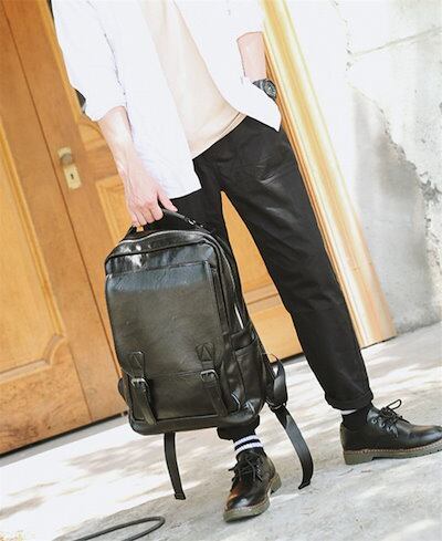 韓国ファッション大人気おしゃれな大容量簡約PUレザーデイバッグリュックサックメンズ