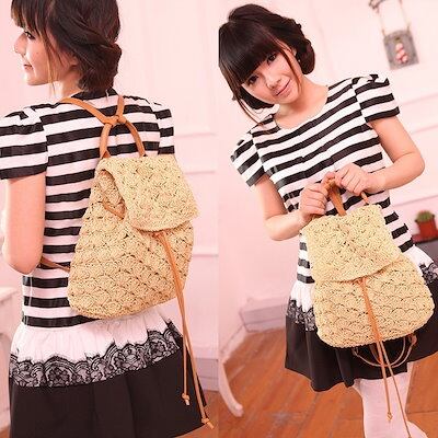 ショルダー バッグ夏 ストローバッグ カジュアル リュック バッグ 旅行バッグ カバン エコバッグ バックパック ビーチバッグ 大容量 おしゃれ