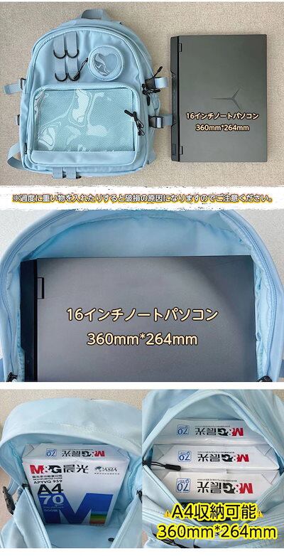 痛バッグ 大容量 痛バッグ リュック リュックサック 大きめ おしゃれ デイパック 通学通勤 可愛い 透明ポケト